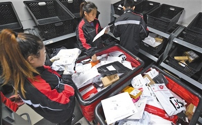 On November 11, at the shunfeng express office of dongdaqiao, the express staff classified the express delivery according to the location. Beijing News reporter Tao Ran photo